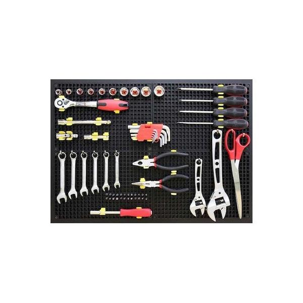 【商品説明】●これさえあれば、今すぐ収納!99pcs●ペグボード4枚とオプションパーツが詰まった、スタートアップレギュラーSET●ペグボード【黒色】 ×4枚●ユニバーサルクリップ ×40個●スチールフック ×10本●1/4 ソケット ×15個●3/8 ソケット ×15個●1/2 ソケット ×15個