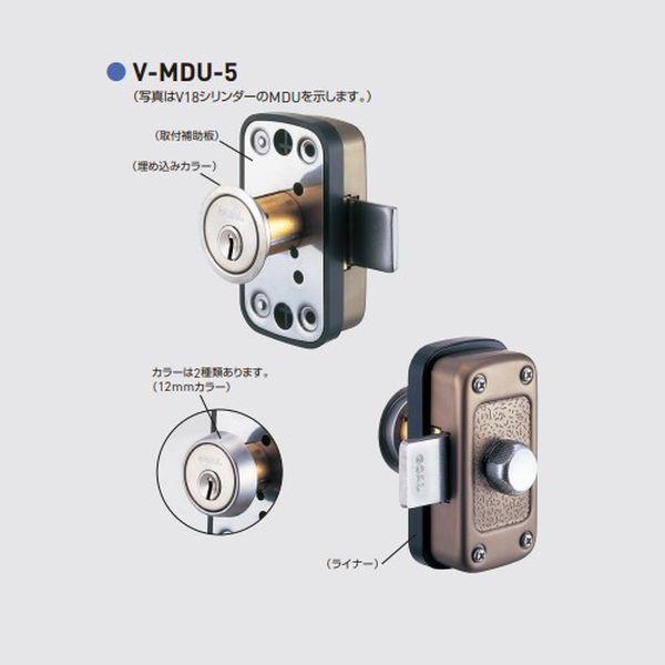 【商品説明】●シリンダー:V18シリンダー●取付可能扉厚(12mmカラー+ライナー無し):30~36、36~43、43~50mm●取付可能扉厚(埋め込みカラー+ライナー無し):41~47、47~54、54~61mm ●取付可能扉厚(12mmカラー+ライナー付き):24~27、27~34、34~41mm●取付可能扉厚(埋め込みカラー+ライナー付き):35~38、38~45~52mm ●左右勝手共通●キー本数:3本●色:シリンダー、12mmカラー、埋め込みカラーはヘアーライン仕上げ●フラッシュ扉にも取付可能。特製の取付補助板がセットされており、フラッシュ扉など戸先付近にしかネジ 穴の加工ができない扉にでも取付けることができます。また受座も2種類(L 型と平型)セットされていますので、扉と枠との状況に応じたものをご使用頂けます。●施解錠確認スイッチ付のMDUVもあります。