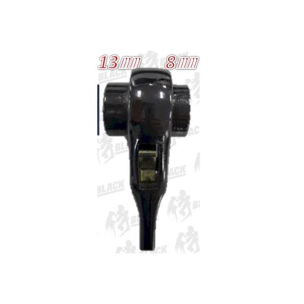 高儀メーカーお問い合わせ:0256-38-1001【商品説明】●カラビナ工具差しに装備可能(取り付け出来ない工具差しもあります)●従来のソケットよりコンパクトな13mm&狭い箇所での作業に便利な8mmのソケット採用●頭部はギア部への異物侵入を防ぐ穴埋め加工済●ギア数 32山●サイズ 全長250mm