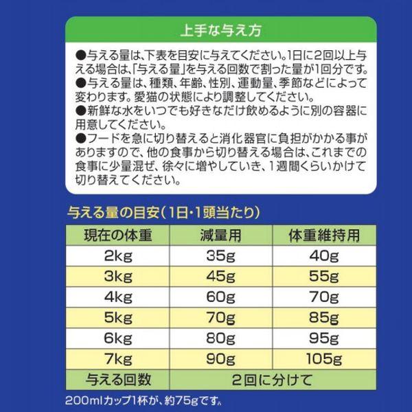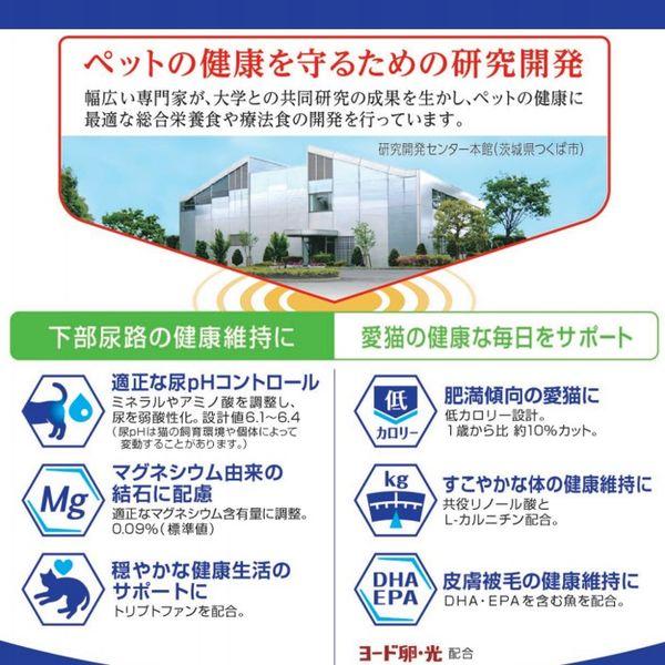 ペットラインメーカーお問い合わせ:0572-20-1655【商品説明】●国産●総合栄養食●ヨード卵光配合●約340kcal●尿pH設計値6.1~6.4●マグネシウム含有量0.09%●フードの形は年齢に合った食べやすさを追求●下部尿路の健康維持フード●肥満傾向のネコのためのフード