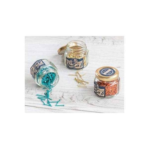 若井産業メーカーお問い合わせ:06-6783-2081【商品説明】●釘と糸を使用して絵を表現する海外で人気の「ストリングアート」。●『Nail it!!(ネイルイット)』はそんなストリングアートにぴったりなアイテムを揃えたブランドです。●今までになかったカラフルなラインナップ。●糸に馴染むので、デザインの幅も広がります。(※ネイルイット用の糸と合わせてご使用下さい。)●可愛いデザインの瓶に入っているのでそのままのお部屋に飾ることもできます。●仕様(釘本体):長さ:19mm、太さ:#17(約Φ1.47mm)●瓶サイズ:50×50×50(mm)●320本/瓶●材質:鉄<使用上の注意>●適正な用途で使用し、お子様の手の届かないところに保管してください。●釘先は鋭利ですので、ご注意ください。●着色釘は、ハンマー等に色移りする場合があります。●高温多湿・直射日光が当たる場所での保管は避けてください。●環境によって、変色や錆が発生する場合があります。●ストリングアート 糸かけ 曼荼羅 糸かけ 釘打ち ネイルガイド