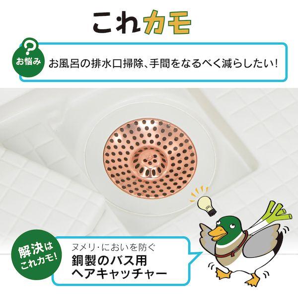 カクダイメーカーお問い合わせ:06-6538-1124【商品説明】●生産国:日本 ●重量:64g●材質:銅 ●使用温度:1~60℃ ●ユニットバス用の銅製ヘアキャッチャーです。●排水口に流れる髪の毛やゴミをキャッチするので、排水管のつまりを防ぎます。●水の流れで髪の毛やごみを一ヵ所に集めます。●銅イオンの殺菌効果でヌメリやにおいを防ぎます。※使用を重ねるうちに黒ずんでいき、しだいに薄青みがかった皮膜に変色しますが、銅イオンの殺菌効果は変わりません。ヘアキャッチャー 排水口 排水口カバー ゴミ受け ゴミ取り これかも 悩み解決 解消 お風呂場 風呂 バス 浴室 ワンルーム 戸建 マンション アパート 集合住宅