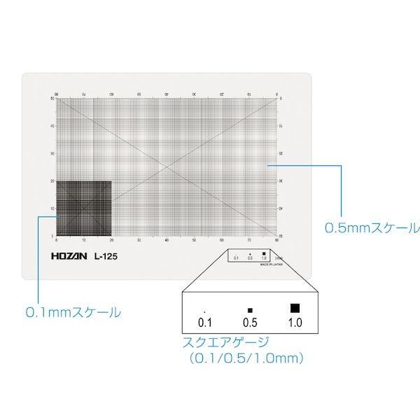 ホーザンメーカーお問い合わせ:06-6567-3132【商品説明】【仕様】●外形寸法(mm):75×105●スケール(mm):50×80(±0.005mm)●線ピッチ(mm):0.1/0.5●線幅(mm):0.007(±0.001mm)●厚さ(mm):0.175●材質:ポリエステル