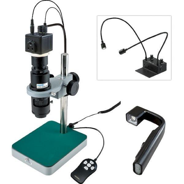 ホーザンメーカーお問い合わせ:06-6567-3132【商品説明】【仕様】●倍率:3.3~23×(4型モニター相当、実際の液晶サイズ約0.2型)●視野(mm):19×11~2.7×1.5●作動距離(mm):105●撮像素子:1/2.8” CMOSイメージセンサ●出力コネクター:HDMI●保存画素数(静止画):1920×1080(200万画素)●保存画素数(動画):1920×1080(200万画素)/1280×720(90万画素)●記録媒体:microSD/SDHC/SDXCメモリーカード(最大128GB)●フレームレート(fps):60●ベース寸法(mm):(W)145×(D)【特長】●フレームレートが高く、動きに強い。●パソコン不要。フルHD画質で観察、画像・動画の保存が可能。●ウェアラブルモニター付き。●手元を見ながら拡大映像も見られるため、作業性の向上に繋がります。●6点セット。【セット内容/付属品】フルHDカメラ(L-851)、ズームレンズ(L-815)、ホルダー(L-509)、標準ベース(L-521)、ウェアラブルモニター(SB-64)、LEDライト(L-703)
