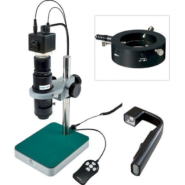 ホーザンメーカーお問い合わせ:06-6567-3132【商品説明】【仕様】●倍率:6.6~47×(4型モニター相当、実際の液晶サイズ約0.2型)●視野(mm):9.8×5.6~1.4×0.7●作動距離(mm):90●撮像素子:1/2.8” CMOSイメージセンサ●出力コネクター:HDMI●保存画素数(静止画):1920×1080(200万画素)●保存画素数(動画):1920×1080(200万画素)/1280×720(90万画素)●記録媒体:microSD/SDHC/SDXCメモリーカード(最大128GB)●フレームレート(fps):60●ベース寸法(mm):(W)145×(D【特長】●フレームレートが高く、動きに強い。●幅広い倍率に対応。●パソコン不要。フルHD画質で観察、画像・動画の保存が可能。●ウェアラブルモニター付き。●手元を見ながら拡大映像も見られるため、作業性の向上に繋がります。●7点セット。【セット内容/付属品】フルHDカメラ(L-851)、ズームレンズ(L-816)、ホルダー(L-509)、標準ベース(L-521)、ウェアラブルモニター(SB-64)、LEDライト(L-711)、拡散フィルター(L-711-1)