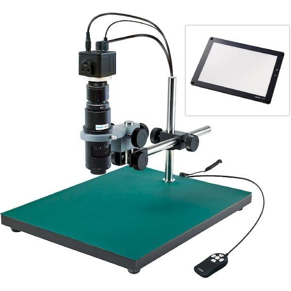 ホーザンメーカーお問い合わせ:06-6567-3132【商品説明】【仕様】●倍率:80~570×●視野(mm):6.5×3.7~0.9×0.5●作動距離(mm):105●撮像素子:1/2.8” CMOSイメージセンサ●出力コネクター:HDMI●保存画素数(静止画):1920×1080(200万画素)●保存画素数(動画):1920×1080(200万画素)/1280×720(90万画素)●記録媒体:microSD/SDHC/SDXCメモリーカード(最大128GB)●フレームレート(fps):最大60●ベース寸法(mm):350(W)×450(D)【特長】●フレームレートが高く、動きに強い。●大きなワークの検査に最適。●幅広い倍率に対応。●パソコン不要。フルHD画質で観察、画像・動画の保存が可能。【セット内容/付属品】フルHDカメラ(L-851)、ズームレンズ(L-817)、ホルダー(L-509)、ロングベース(L-525)、ロングストレートアーム(L-523)、LEDライト(L-718)【注意事項】※仕様の倍率は24インチモニター使用時、解像度1920×1080設定時の倍率です。