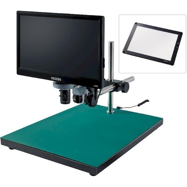 ホーザンメーカーお問い合わせ:06-6567-3132【商品説明】【仕様】●撮像素子:1/3CMOSイメージセンサ●有効画素数:1920×1080(200万画素)●記録媒体:SD/SDHCメモリーカード(最大32GB)●最大フレームレート(fps):30●モニター:11.6型ワイド●ベース寸法(mm):350(W)×450(D)●倍率:2.2×~5.8×●視野(mm):116×65~43×24●作動距離(mm):265~100【特長】●その他の機器は一切不要、モニターとカメラが一体になったオールインワンモデル。●大きなワークの検査に最適。●低倍率仕様。【セット内容/付属品】モニター付カメラ(L-860)、レンズ(L-600-12)、ホルダー(L-509)、ロングストレートアーム(L-523)、ロングベース(L-525)、LEDライト(L-718)【注意事項】※仕様の倍率はモニターサイズ11.6型使用時の倍率です。