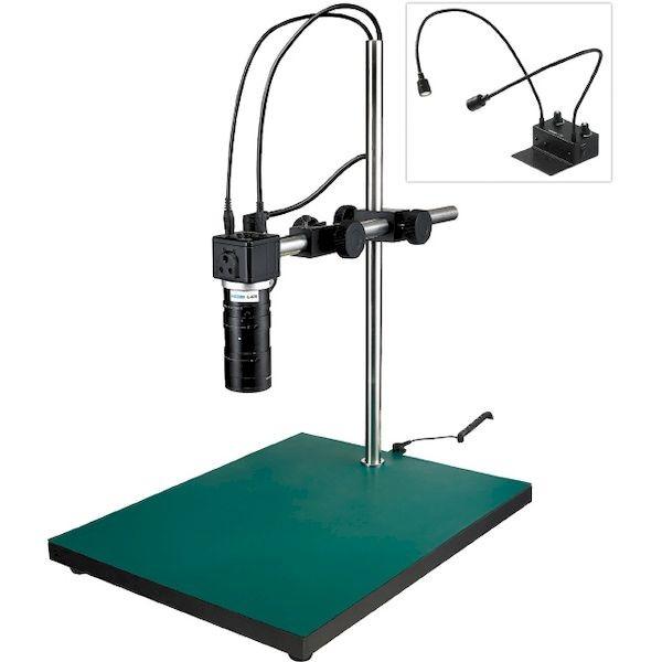 ホーザンメーカーお問い合わせ:06-6567-3132【商品説明】【仕様】●撮像素子:1/2.8” CMOSイメージセンサ●出力コネクター:HDMI●保存画素数(静止画):1920×1080(200万画素)●保存画素数(動画):1920×1080(200万画素)/1280×720(90万画素)●記録媒体:microSD/SDHC/SDXCメモリーカード(最大128GB)●最大フレームレート(fps):60●ベース寸法(mm):(W)350×(D)450●倍率X:2.7~76、1.3~37(L-859使用時)●視野(mm):191×108~6.9×3.9●作動距離(mm):350【特長】●パソコン不要。フルHD画質で観察、画像・動画の保存が可能。●フレームレートが高く、動きに強い。●幅が広く高さのあるワークの検査に最適。●ピント調整機能付、中倍率仕様のズームレンズ。【セット内容/付属品】フルHDカメラ(L-851)、ズームレンズ(L-870)、レンズフィルター(L-50-2)、ロングストレートアーム(L-518)、ロングベース(L-525)、LEDライト(L-703)、クランプセット(L-703-1)【注意事項】※仕様の倍率は24インチモニター使用時、解像度1920×1080設定時の倍率です。