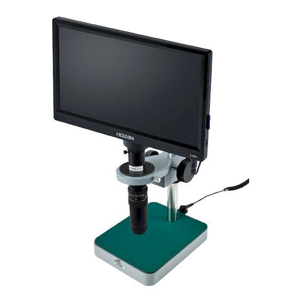 ホーザンメーカーお問い合わせ:06-6567-3132【商品説明】【仕様】●撮像素子:1/3” CMOSイメージセンサ●有効画素数:1920×1080(200万画素)●記録媒体:SD/SDHCメモリーカード(最大32GB)●フレームレート(fps):最大30●モニター:11.6型ワイド●ベース寸法(mm):(W)145×(D)185●倍率X:49~290(モニターサイズ11.6型)●視野(mm):5.1×2.9~0.8×0.5●作動距離(mm):55●照明なし。【セット内容/付属品】モニター付カメラ(L-860)、ズームレンズ(L-876)、ホルダー(L-509)、標準ベース(L-521)