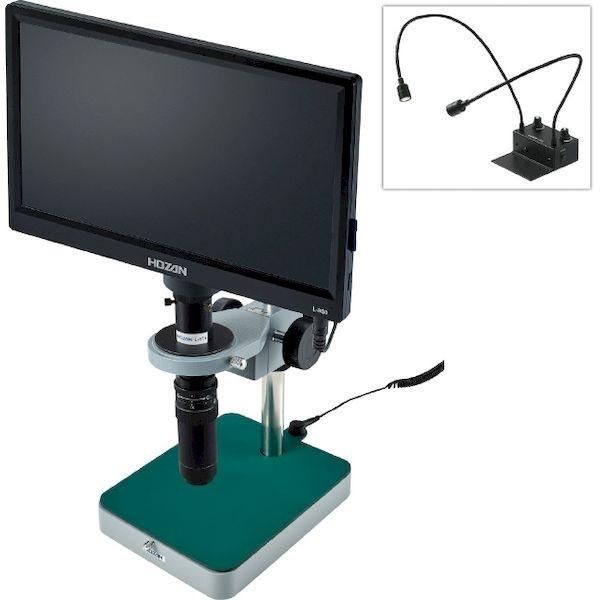 ホーザンメーカーお問い合わせ:06-6567-3132【商品説明】【仕様】●撮像素子:1/3” CMOSイメージセンサ●有効画素数:1920×1080(200万画素)●記録媒体:SD/SDHCメモリーカード(最大32GB)●フレームレート(fps):最大30●モニター:11.6型ワイド●ベース寸法(mm):(W)145×(D)185●倍率X:49~290(モニターサイズ11.6型)●視野(mm):5.1×2.9~0.8×0.5●作動距離(mm):55●照明(L-703) 付属。【セット内容/付属品】モニター付カメラ(L-860)、ズームレンズ(L-876)、ホルダー(L-509)、標準ベース(L-521)、LEDライト(L-703)