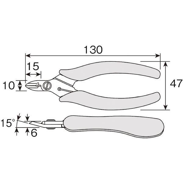 ホーザンメーカーお問い合わせ:06-6567-3132【商品説明】【仕様】●全長(mm):130●切断能力(mmφ):2.0(銅線)●切断能力(mm2):2.0(銅より線)●硬度HRC(刃部):52●重量(g):60●RoHS規制:規制10物質に適合【特長】●銅線専用の刃付けで軽い切れ味ときれいな切断面を実現。また精密薄刃仕上げにより、奥まった個所での作業にも最適です。●机上からストレスなく手に取れるデザイン性に優れたグリップを採用。●ガタの出にくいセットボルト仕様。●耐久性、操作性に優れ、連続作業に疲れを感じさせません。●机上に置いた際、ハンドルの先端が持ち上がるため、従来のニッパーよりもストレスなく手に取ることができます。【注意事項】※ハンドルカバーは絶縁ではありません。電気が流れている個所には使用しないでください。※作業時は保護メガネを着用してください。