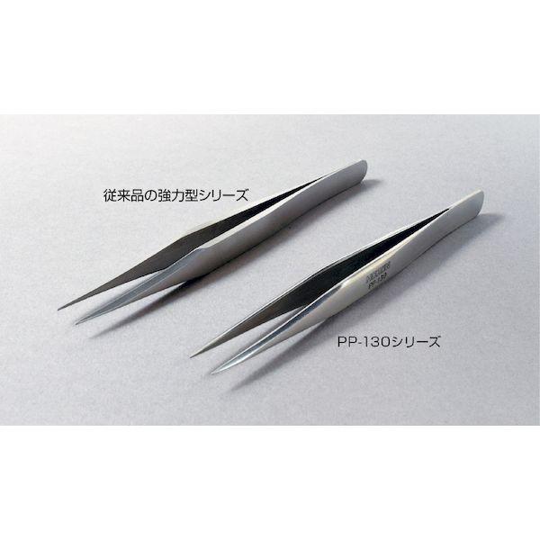 ホーザンメーカーお問い合わせ:06-6567-3132【商品説明】【仕様】●先端(mm):0.6●板圧(mm):2.3●全長(mm):125●幅(mm):10●材質:ステンレス(SUS304) ●重量(g):27【特長】●滑らかな手触りと、先端精度にこだわった強力型ピンセット。●作業者の指を痛めることなく長時間の連続作業が行えます。●板厚2.3mmのSUS304ステンレスを採用し、適度な剛性と非磁性・耐食性を両立。