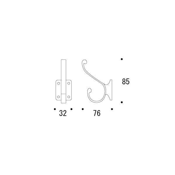 ●特徴:真鍮製のコートフックです。シンプルでお部屋のイメージよ損なわない、スタンダードなコート掛け用フックです。玄関先にいくつか取り付けても便利なフックです。。●用途:アンテーク調な家具・レトロ調なデザイン家具などに、店舗やホテルやゲストハウスから戸建て住宅・マンションに●主材質:真鍮●色/仕上:金色/真鍮クリアー仕上げ●サイズ 幅×高さ×奥行(mm):32×85×76●耐荷重:約5kg●入数:1●生産国:台湾●付属品:取付ビス(3.1×16 4P)