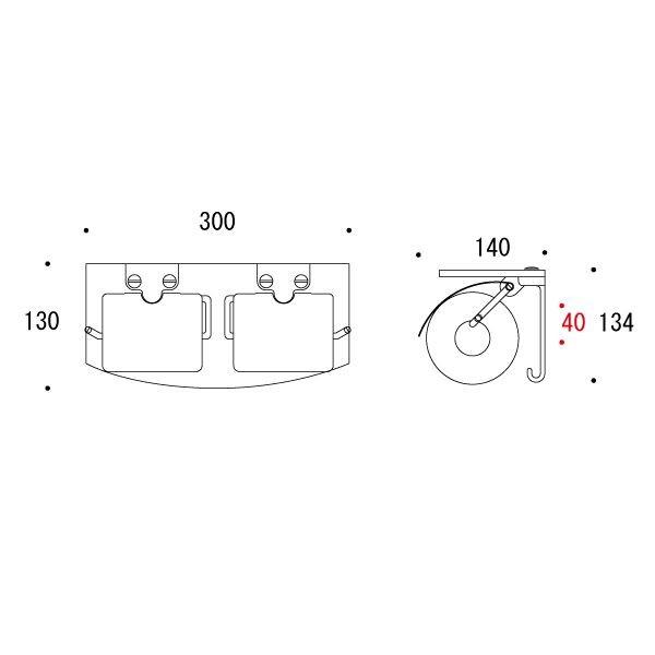 ●特徴:真鍮製のガラス棚付き2連ペーパーホルダー(紙巻器)です。トイレットペーパーホルダーにガラス棚がついたおしゃれな商品です。ペーパーカバーは貝殻のような波打つデザインで、強化ガラスとの組合せも涼しげで清楚な印象です。ビス取付部分の先端はフック型になっていて、ペーパーのストッカーを掛けたり小物を掛けたりと、非常に便利!ツインペーパーホルダー、ダブルペーパーホルダーとも呼ばれております。●用途:アンテーク調な家具・レトロ調なデザイン家具などに、店舗やホテルやゲストハウスから戸建て住宅・マンションに●主材質:真鍮+ガラス(7.7mm)●色/仕上:アースグレイ/真鍮アースグレイ仕上げ●サイズ 幅×高さ×奥行(mm):300×134×140●耐荷重:約5kg●入数:1●生産国:台湾●付属品:取付ビス(3.5×25)