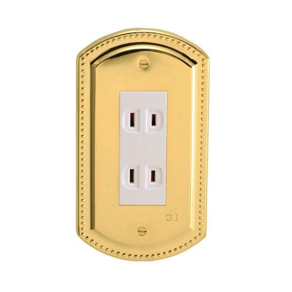 ●特徴:真鍮製の、1列用のデコラティブなデザインで存在感のあるコンセントプレート。コスモスイッチワイド21専用のコンセントプレートです。●用途:アンテーク調な家具・レトロ調なデザイン家具などに、店舗やホテルやゲストハウスから戸建て住宅・マンションに●主材質:真鍮●色/仕上:金色/真鍮PVD仕上げ●サイズ 幅×高さ×厚さ(mm):81×142×9●入数:1●生産国:台湾●付属品:取付ビス