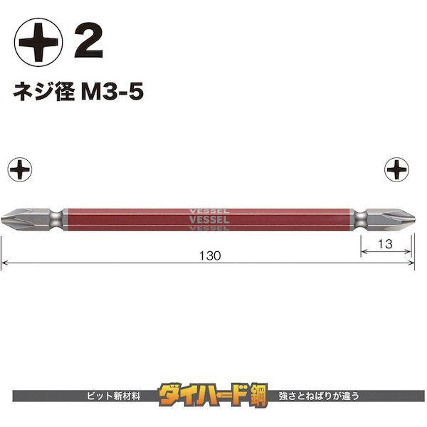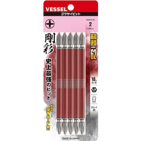 ベッセルメーカーお問い合わせ:0120-999-914【特長】●剛彩ビット用に開発した印刷機により六角面すべてにカラー印刷、塗装品のようなにじみがなくシャープなエッジで、VESSELロゴもクリアに表示されています。●10色カラーでサイズを色分けし、ビットが選びやすくなっています。●ビット材はダイハード鋼(最高硬度HRC62)を使用しています。●強くてしなやかなで耐久性は抜群です。●精緻な刃先加工で高い嵌合性を実現しました。●刃先部分にはメッキや塗装がつかないためネジとの食いつきが良く、様々なネジにフィットします。【用途】●建築、電気、機械組立・整備、精密組立、DIYに。【仕様】●刃先:[[+]]2●全長(mm):130●色:赤●セット内容:5本●セット内容(本):5●シャンク径(mm):6.35●パック入数(本):5【仕様2】●ダイハード鋼●マグネット入り●18V対応●差込軸:6.35mm●軸色:赤●両頭●18Vインパクト対応【材質/仕上】●ダイハード鋼(最高硬度HRC62)【注意】●作業時は、保護メガネを着用してください。●必要以上に無理な力で使用しないでください。●工具は、本来の使用目的以外で使用しないでください。●電流が流れているものには使用しないでください。●正しい用途・サイズ・使い方を確かめてご使用ください。【原産国】日本