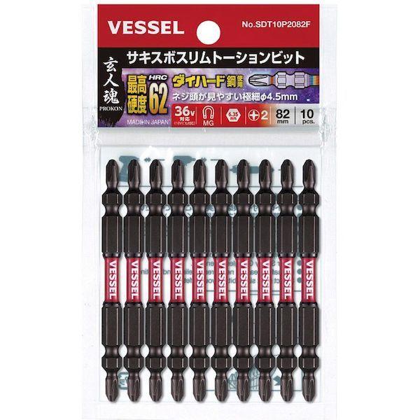 ベッセルメーカーお問い合わせ:0120-999-914【特長】●刃先が先細形状になっており、ねじ頭が断然見やすく作業効率が大幅に上がります。●強さと粘りのある新素材により電動インパクトの高速・高トルク化に対応しました。ドリルネジやコーススレッドネジに適しています。●ダブルトーション効果で、電動インパクトの衝撃を吸収し、耐久性が大幅にUPします。●ネジ着座前の小さな衝撃を緩和するので締め込み作業が安定します。【用途】●ダクト、サイディングなどでのドリルネジ作業。●根太打ち、コンパネ取り付け、2X4などのロングビス、プラグレスビス。●内装造作、家具・木工、コンパネ取り付けやボード、ドライウォール作業。●設備、電気工事に。【仕様】●刃先:[[+]]2●全長(mm):82●セット内容(本):10●硬さ:HRC62●シャンク径(mm):6.35【仕様2】●36Vインパクト対応●先端:マグネット入り●36V対応(18Vにも対応)●マグネット入り●両頭ビット●刃先:(+)2●全長(mm):82●10本組【材質/仕上】●新素材”ダイハード鋼”【注意】●作業時は、保護メガネを着用してください。●必要以上に無理な力で使用しないでください。●電流が流れているものには使用しないでください。●電流が流れているものには使用しないでください。●改造しないでください。加熱・加工等をした場合は、著しく品質の低下を招きます。【原産国】日本