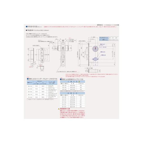 【商品説明】●フロント記号:AS.LX(間仕切錠タイプ)●バックセットサイズ:ト51mm●フロントサイズ:H166mm×W 25mm(標準フロント)●対応扉厚:33mm以上~43mm未満●仕上げ:コーティングアンバー●勝手:左右兼用●商品セット内容・本体(バックセット32mm用)/1個・受け座セット/1個・非常解除装置(エマーシル表示あり)/1個・サムターン/1個●注意:本商品にはレバー、レバー座は付属されておりません。