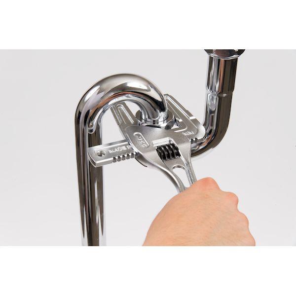 松阪鉄工所メーカーお問い合わせ:06-6747-6921【特長】●化粧配管、水道用PE管金属継手、鋼管用継手の締め付けや排水トラップの取り付け・取り外しと1丁4役のレンチです。●92mmのワイドな口開きタイプです。●本体は高強度な特殊メタル鍛造製です。●本体と上アゴのガタが少ない高精度仕上げです。●PE管金属継手などの締め付け時に使用するサヤ管を標準付属しています。【用途】●化粧配管、鋼管用継手、水道用PE管金属継手の締め付け、排水トラップの取り付け・取り外しに。【仕様】●最大口開き(mm):92●全長(mm):252●口深さ(mm):62●口厚み(mm):11●呼び寸法(mm):92●タイプ:縦型●口開き寸法(mm):16~92【仕様2】●許容トルク:6角対辺83mm:400N・m(水道用ポリエチレン管金属継手 呼び50A等)●許容トルク:8角対辺63mm:300N・m(角ニップル 呼び50A等)【材質/仕上】●特殊メタル【セット内容/付属品】●専用サヤ管【原産国】日本