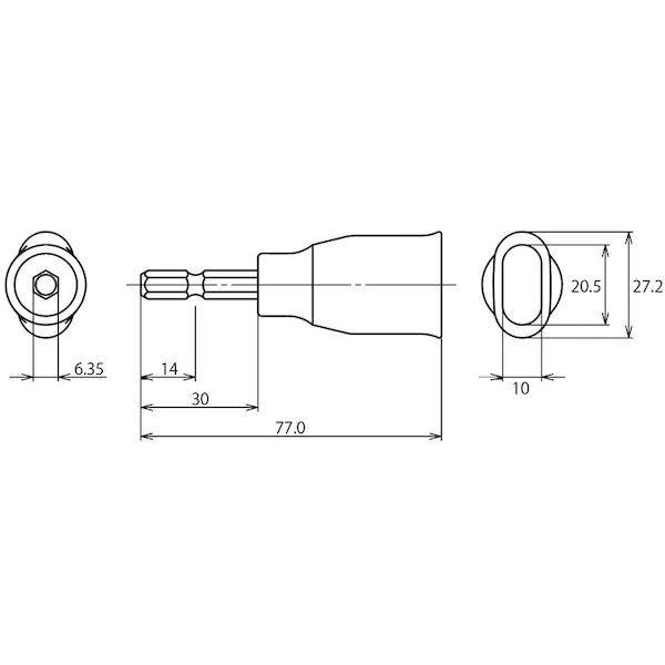 ロブテックスメーカーお問い合わせ:072-980-1111【特長】●ソケット部の六角穴に六角軸を圧入することで、ねじれ・折れに強く、トルク伝達効率が高いです。●挿入しやすいラッパ形状です。【用途】●フォームタイ(K型)の脱着に。【仕様】●軸寸法(mm):6.35●全長(mm):77●対辺寸法(mm):K型用●対辺形状:フォームタイ用●モデル:ストロックシリーズ●シャフト径(mm):6.35●色:シルバー●シャフト長(mm):30【仕様2】●18Vインパクト対応【材質/仕上】●特殊鋼【原産国】日本