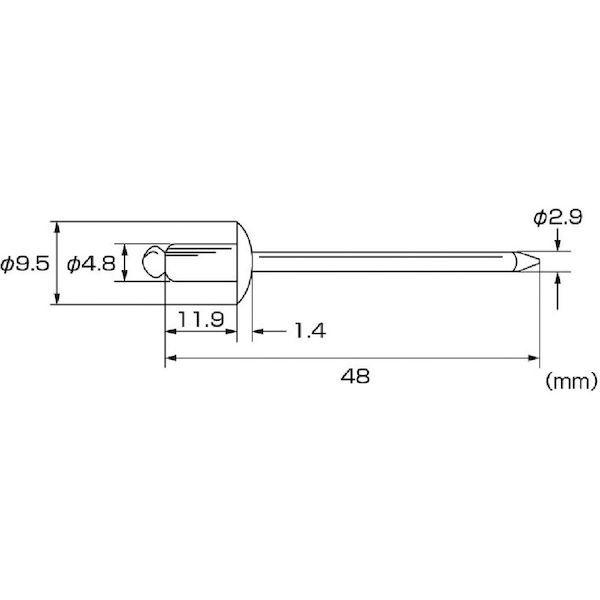 ロブテックスメーカーお問い合わせ:072-980-1111【特長】●必要な仕事に無駄なく使える少量サイズです。●片側から複数の母材をワン・アクションで締結できます。【仕様】●かしめ板厚(mm):4.8~8.0●リベット長(mm):11.9●フランジ径(mm):9.5●リベット径(mm):4.8●下穴径(mm):4.9~5.0●せん断荷重(N):5450●引張荷重(N):6350【仕様2】●エコパック入り【材質/仕上】●リベット本体(フランジ):ステンレス(SUS305)●マンドレル(シャフト):ステンレス(SUS304相当材)【注意】●適正かしめ板厚、下穴径は当社指定寸法を守り安全率を十分に考慮して施工してください。【原産国】日本