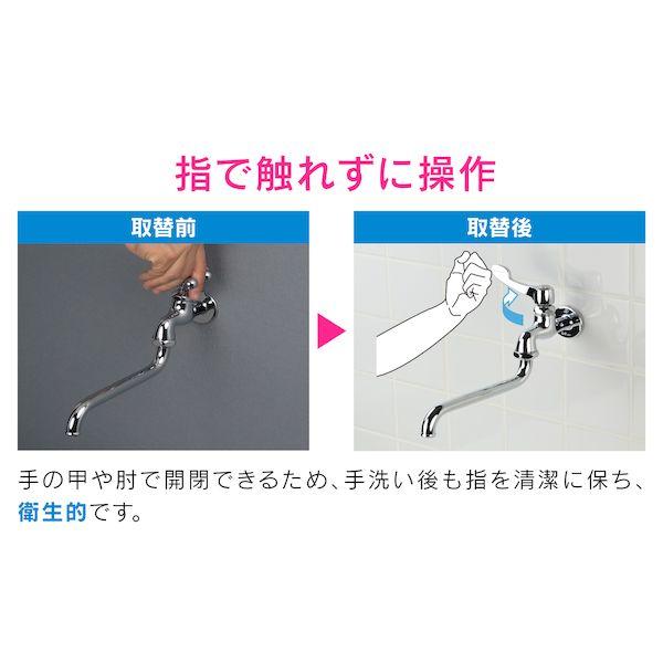 カクダイメーカーお問い合わせ:06-6538-1124【商品説明】●手の甲で開閉できる衛生的なレバーハンドルです。●軽い力で開閉でき、ハンドル操作が楽になります。●ハンドルが壁にあたり吐水量を制限するので、簡単に節水することができます。●指で触れずに手の甲や肘で開閉できるので、手洗い後も指を清潔に保てます。大人数が使用する学校や施設に最適です。●各メーカーに対応したアダプターとビスがついているので、ほとんどの水栓に取付けることができます。●ハンドル長さ75ミリレバー ハンドル 水栓ハンドル 蛇口ハンドル 交換 取替 取替レバーハンドル操作 節水節約壁にあたる インサートつき インサート樹脂つき アダプターつき 子ども 軽い 楽 ノンライジング カクダイ KAKUDAI MYM SANEI 三栄 三栄水栓製作所 KVK TOTO INAX ワンタッチレバー ワンタッチ操作 ワンタッチレバーハンドル 金属レバー PR230F-S PR-23F PR23F-L スイングレバー エコハンドル コロナ ウイルス 感染症 衛生的 学校 施設