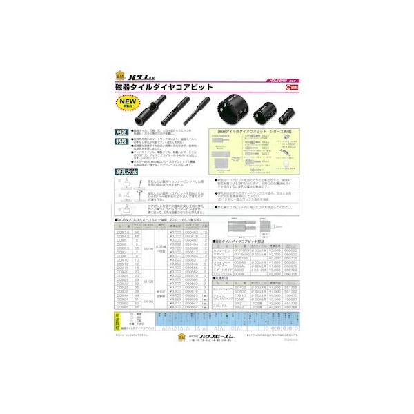 ハウスビーエムメーカーお問い合わせ:0256-34-7384【商品説明】●磁器タイルダイヤコアビット用センターピンシャンク●六角軸6.35●穴径32以上用