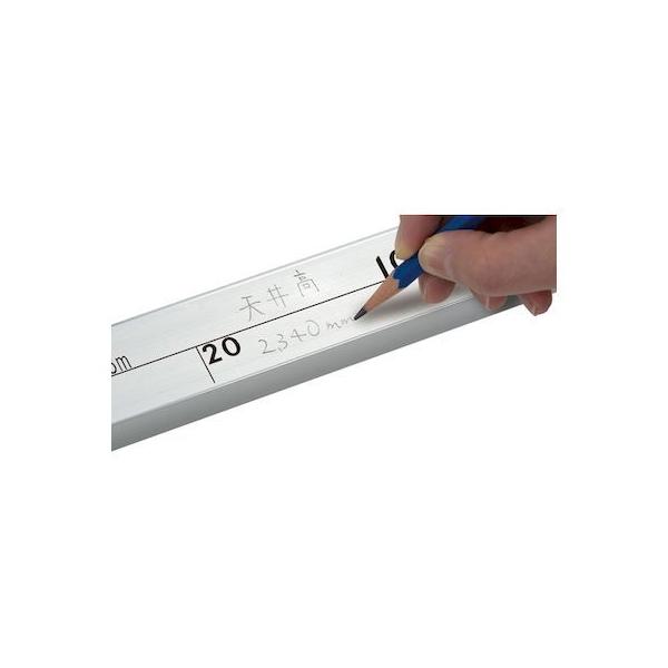 シンワ測定メーカーお問い合わせ:0120-666-899【商品説明】●特長●ストッパーレバーが強化され、折れにくさ、固定のしやすさが格段にアップしました。●外測用フックを引っ掛けて外寸測定ができます。●3倍の長さまで伸び、読み取りは手元で確認でき、一人でも簡単に長い間隔を測る事ができます。●突き当て部にはプラスチックを使用しているので、突き当て箇所に傷を付けません。●大きくて読み取りやすい目盛数字を採用しています。●伸縮が一方向なので、持ち替える必要がなく、特に天井高測定に適しています。●ワンタッチ式のストッパーレバーで、作業のスピードアップが図れます。●裏面書き込みテープ付で、寸法の写しやバカ棒用途に便利です。●大型の突き当てと側面ギリギリまで伸ばした目盛線で測りやすくケガキやすいです。●仕様●本体サイズ 1,502~4,093×47×23mm●製品質量 990g●長さの許容差 2mまで±1.0mm 2m以上±0.5mm/m●測定範囲 1,502mm(4尺9寸5分相当)~4,093mm(13尺5寸1分相当)●材質 突き当て部:ABS樹脂 竿:アルミ ストッパーレバー:ポリカーボネート樹脂 ジョイント:ポリアセタール樹脂 外測用フック:ステンレス