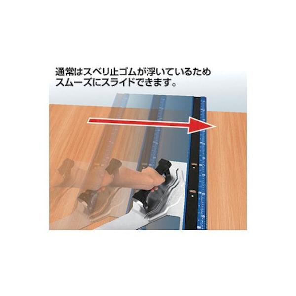 シンワ測定メーカーお問い合わせ:0120-666-899【商品説明】●特長●ラクにスライド、ガッチリ固定できる、「スライド・ストップシステム」を採用しました。通常はスベリ止ゴムが浮いているためスムーズにスライドできます。取手を押さえると、スベリ止ゴム部分が下がって材料に密着し、ガッチリ固定します。●しっかり握れるハンドル、「ワイドヘキサグリップ」を採用しました。高さがあり、ハンドルを握った手が下に当たらず快適です。●真っ直ぐ立つヒール形状を採用しました。ガイドとハンドル取付板の高さが同じなので、立て掛けたとき、製品が斜めになりません。●特殊中空形状により軽くて頑丈なガイドです。●仕様●直角度 100mmにつき0.1mm以下●材質 本体:アルミ ガイド面:ステンレス 保護キャップ:ABS樹脂 大型ハンドル:ABS樹脂、エラストマー樹脂、ポリプロピレン樹脂●本体サイズ 632×350×83mm●製品質量 1,100g●付属品 捨て木1本