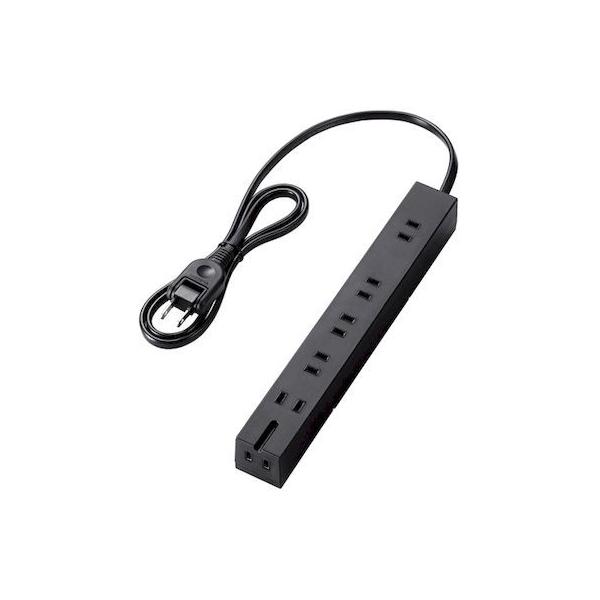 エレコムメーカーお問い合わせ:0120-898-794【商品説明】●本体差込口形状:2ピン(側面に設置した1個口のみ3ピン対応※アース機能はありません) ●本体差込口個数:6個口 ●プラグ仕様:2ピン ●コード長:1.0m ●定格:125V・15A・1500W ●雷ガード:○ ●ほこりシャッター:○ ●絶縁キャップ付きプラグ:○ ●二重被ふく:○ ●スイングプラグ:○ ●壁掛け用フック:○ ●カラー:ブラック ●材質:本体:ABS樹脂/プラグ:PVC/差込口:ユリア樹脂 ●外形寸法:幅34mm×奥行252mm×高さ33mm ※コード部分及びプラグ部分を除く ●質量:約2