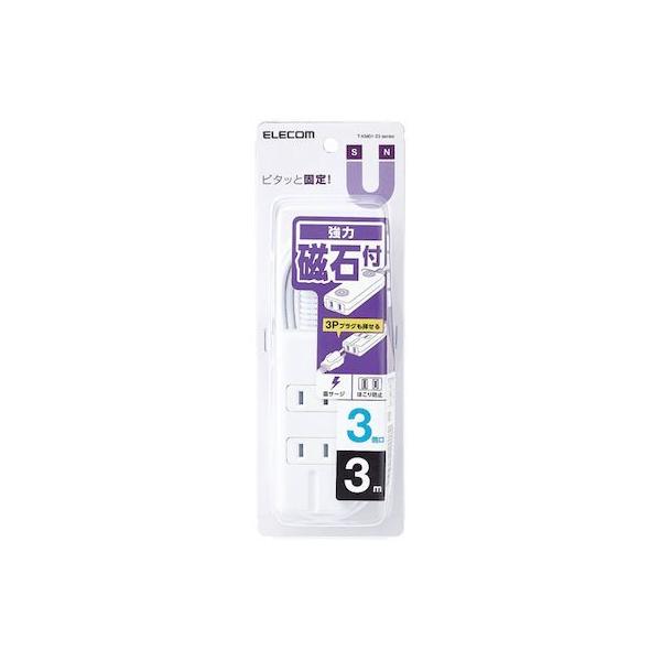 エレコムメーカーお問い合わせ:0120-898-794【商品説明】●本体差込口形状:2ピン(側面に設置した1個口のみ3ピン対応※アース機能はありません) ●本体差込口個数:3個口 ●プラグ仕様:2ピン ●コード長:3.0m ●定格:125V・15A・1500W ●雷ガード:○ ●ほこりシャッター:○ ●絶縁キャップ付きプラグ:○ ●二重被ふく:○ ●スイングプラグ:○ ●マグネット:○ ●カラー:ホワイト ●材質:本体:ABS樹脂、プラグ:PVC 差込口:ユリア樹脂 ●外形寸法:幅40mm×奥行94mm×高さ23mm ※コード部分及びプラグ部分を除く ●質量:約280g