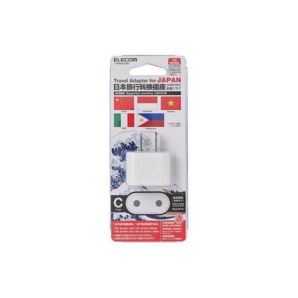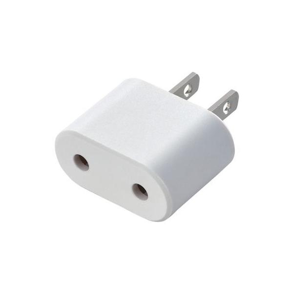 エレコムメーカーお問い合わせ:0120-898-794【商品説明】●使用目的・用途:海外向け形状のコンセントプラグを日本国内向け形状のコンセントプラグに変換します ●本体差込口形状:Cタイプ ●本体差込口個数:1個口 ●プラグ仕様:Aタイプ(2ピン) ●定格:250V・6A ●カラー:ホワイト ●材質:本体(差込口一体型):ユリア樹脂 ●外形寸法:幅38.0mm×奥行18.0mm×高さ27.8mm ※プラグ部分を除く ●質量:約24g ●使用可能地域:日本 ●電気用品安全法:PSE適合 ●その他:※この製品は日本国内での使用を前提に製造されたものですので、日本国外ではご