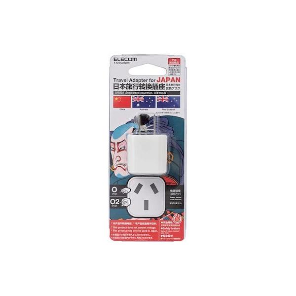 エレコムメーカーお問い合わせ:0120-898-794【商品説明】●使用目的・用途:海外向け形状のコンセントプラグを日本国内向け形状のコンセントプラグに変換します ●本体差込口形状:O2タイプ ●本体差込口個数:1個口 ●プラグ仕様:Aタイプ(2ピン) ●定格:250V・10A ●カラー:ホワイト ●材質:本体(差込口一体型):ユリア樹脂 ●外形寸法:幅33.0mm×奥行35.0mm×高さ32.0mm ※プラグ部分を除く ●質量:約32g ●使用可能地域:日本 ●電気用品安全法:PSE適合 ●その他:※この製品は日本国内での使用を前提に製造されたものですので、日本国外で
