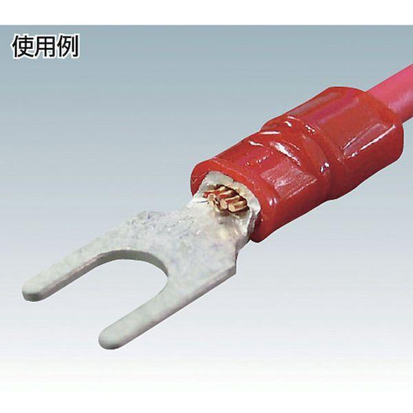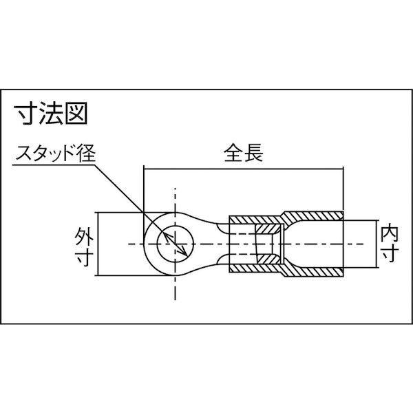 【特長】●端子筒部に絶縁被覆があらかじめセットされております。●絶縁体形状:TME形は絶縁被覆部内側に電線挿入ガイド(じょうご状)を設けました。●心線はよじらなくても被覆をストリップした状態でガイドに沿ってスムーズに筒部まで挿入できます。●ノンハロゲン材料のため、燃焼時に有毒なハロゲン系ガスや腐食性ガスが発生しません。【用途】●軟鋼のより線電線の接続に。【仕様】●電線抱合範囲 より線([[MM2]]):1.04~2.63●色:青●外形寸法(mm):6.6●スタッド径(mm):4.3●全長(mm):19.9●内寸(mm):4.5●JIS規格品:×●最高使用温度(℃):使用温度範囲:-40℃~120℃●定格電圧(V):600●電線抱合範囲AWG:16-14●形状:丸形/先開形(単線非対応)【仕様2】●単線非対応●定格電圧:600V●使用温度範囲:-40℃~120℃●RoHS10物質適合品【材質/仕上】●端子:無酸素銅(電気すずメッキ)●スリーブ:無酸素銅管(電気すずメッキ)●絶縁体:ポリカーボネート【注意】●銅線専用です。●電線抱合範囲内でご使用ください。●当社指定の適用圧着工具をご使用ください。【原産国】日本