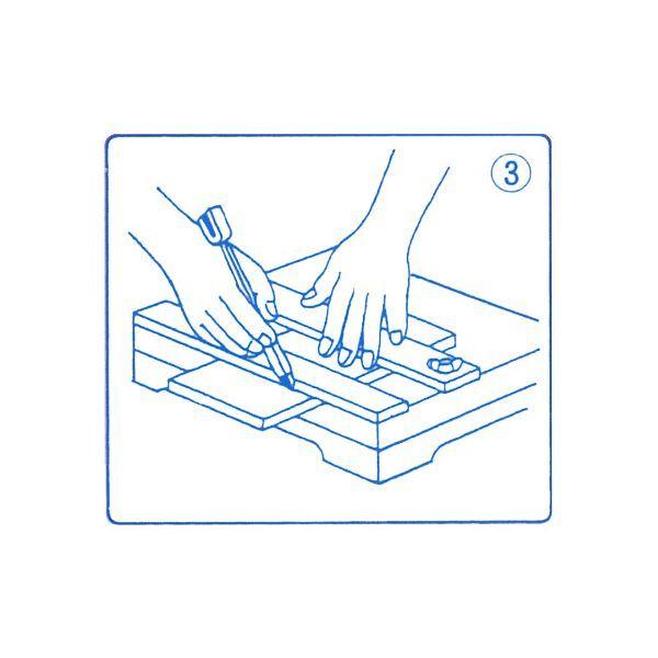 ●タイルカッターでタイルに筋を引くように切れ目を入れます。●女性の方は力が入るように握り方を変えて筋目をつけてください。●筋目が有るのか無いのか分からないと綺麗に切れません、クッキリつけてください。 タイルに入れた筋目を折り曲げるようにタイルを2つに割ります 2つに割る場合は、わりと簡単ですが小さい幅を切る時は難しいです。U型の部分でタイルをはさんで割ることも出来ます。タイルカッター B型 全長:200mm