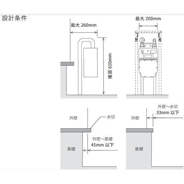 森田アルミ工業メーカーお問い合わせ:072-480-1400【商品説明】●特徴:ガスメーターカバーBAKOとは・・・シンプルでスタイリッシュな、ガスメーターカバーです。折角、建物のファサードを整えたにも関わらず、武骨なガスメーターが玄関の脇で悪目立ち。外壁はブラックなのに、ガスメーターの色はアイボリーホワイトだったり・・・、そんな、建物周りのチグハグさを解決するためにBAKO(バコ)ガスメーターカバーは生まれました。脇役を脇役らしく、静かな存在に変えます。水平垂直のデザイン・・・建築は床・壁・天井など水平垂直の要素で成り立っています。メーター類もその延長であって欲しい。壁面に添わせる存在だからこそ、ガスメーターカバーも水平垂直にこだわりました。建築全体のコンセプトに馴染む存在、それがBAKOの立ち位置です。ガスメーターを守る・・・新築時に設置した場合、BAKOは普段目にするガスメーターよりも一回り小さい印象を受けるかもしれません。これは、通常よりもガスメーターを低い位置に設置するためです。ガスメーターの推奨高さは水撥ねの心配があり高い位置になっていますが、BAKOを採用することでガスメーターを低い位置に設置できます。検針時にはフタをはずしてください・・・外からはメーターが見えないようになっています。検針時にはカバーを手前に「バコッと」引いて完全に外してください。最初の検診時には、余りにも建物に馴染んでいて、気づかれないかもしれませんので、業者の方にその存在を伝えてください。新築でも既存のガスメーターにも・・・BAKOガスメーターカバーは、都市ガス用のガスメーター(東京ガス、大阪ガス、東邦ガスで検証済み)用に開発されました。新築時には、メーターの取付高さを指定して頂き、配管もすっぽりと覆うことができます。既存のガスメーターに後付けする場合には、メーター下部の配管は露出しますが、強度上問題ございません。●用途:ガスメーター用カバー、ガスメーター用ボックスとして●色(カラー):ホワイト(白)●材質:本体:スチール(焼付粉体塗装)/固定金具類:スチール(メッキ仕上)●寸法 縦×横×高さ(mm):245×245×700●付属品:固定金具×2ケ、奥行調整金具×2ケ、トラス(M4×6)×6本、 コンクリートビス(5×25)×8本●注意事項:※本製品はガスメーターの取り付け高さを予め指定いただくことを前提に設計されています。※ガスメーター取り付け高さはガス配管埋設時に指定してください。高さを指定しないと、ガスメーター取り付け時に配管を切断する必要があります。※本製品は東京ガス、大阪ガス、東邦ガスのガスメーターサイズに合わせて設計されていますが、導入時にはメーターのサイズや配管ルートなどをご確認ください。※既存のガスメーターへ設置される場合には、施工説明書をよくお読みになり、取り付け可能かをご確認ください。※メーター検針時にガスメーターの位置、フタの開け方等を聞かれることがあります。建物所有者に予めお伝えください。ガスメーターカバー ガスメーターボックス ガスメーター点検カバー ガスメーター化粧カバー ガスメーターオシャレ ガスメーター 隠し カバー