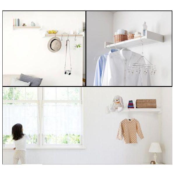 森田アルミ工業メーカーお問い合わせ:072-480-1400【商品説明】●特徴:ウォーリーは物干しと収納の両方の機能をもった、オープンクローゼットタイプの室内物干しシェルフです。洗濯ものを掛けるだけでなく、シェルフに小物を置いて収納することができます。物干しと簡易的なクローゼットの役割を兼ねながら、室内干しの風景がインテリアに調和する今までにない室内物干し製品をつくりました。?●用途:ランドリースペース・寝室・リビング等、場所を選ばず設置可能です。●最大荷重:パイプ10kg、シェルフ10kg●サイズ:幅1250x高さ80x奥行262mm●材質(エンドキャップ・フレーム用ビート・ブラケット):ABS樹脂・PVC・スチール メッキ仕上げ●色(カラー):ミルクホワイト×バーチ(木目シート ラッピング)室内物干 天井棚 天井シェルフ 天井収納棚 物干シェルフ 棚付き物干 窓枠物干 窓枠棚 オシャレ収納 シンプル収納 収納棚 多目的シェルフ DIY 収納 DIY 室内物干し棚 壁面物干 壁面収納 壁付収納棚 壁付シェルフ