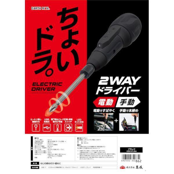 高儀メーカーお問い合わせ:0256-38-1001【商品説明】●特長●用途に合わせて電動と手動を使い分け ●USB充電 ●ヒートン回し機能付き ●落下防止コート取付け可能 ●LEDライト付き●付属品・セット内容 ●本体×1 ●6.35mm六角軸両頭ビット+No.2×110mm×1 ●USBコード×1●仕様 ●【本体】●モーター電圧:DC3.7V ●充電時間(目安): 最大約3時間(空→フル充電) ●無負荷回転数:約220min-1 ●ビット差込口:6.35mm六角軸用 ●最大トルク(電動):約2.0N・m(約20.3kgf-c