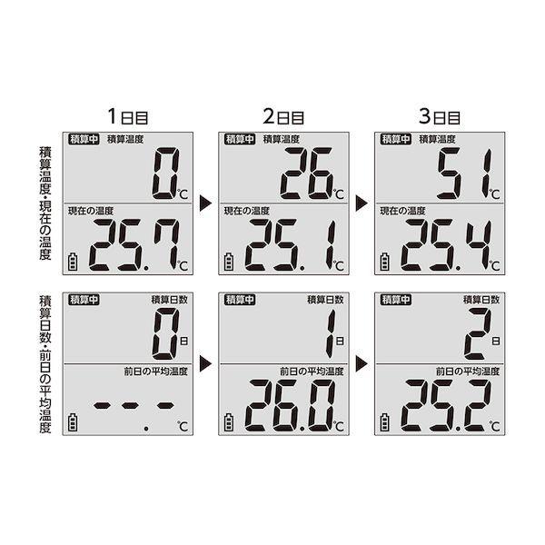 シンワ測定メーカーお問い合わせ:0120-666-899【商品説明】●特長●操作ボタンは全て前面にあり、簡単に操作できます。●読み取りやすい文字高20mmの大型液晶表示を採用しました。●電池消耗表示付なので電池の消耗状態がわかります。●積算を継続したまま電池の交換ができます。また、万が一測定中に電池が切れてもそれまでの積算温度を保存できるバックアップ機能付です。●軽量・コンパクトです。●水に濡れても安心の防水性能IPX4です。●使用する場所によって設置方法を選べる、フック穴とスタンド付です。●仕様●測定範囲:-5~50℃●積算温度計測範囲:0~9,99