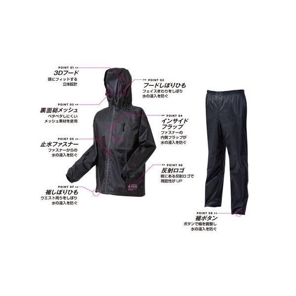 喜多メーカーお問い合わせ:0800-200-1697●常識を覆す「軽さ」を実現した超軽量で、動きやすさを追求したレインウェア!●従来品に比べ、約50%の軽量化をすることで、合羽特有の重たさによる動きにくさを解消!●高い 防水力 耐水圧 10,000mmH2O●縫製部分の裏面には水滴の侵入を防ぐ防水テープを貼っています(シームテープ加工)<上着>●【3D立体フード】しぼりヒモ付きの3D設計フードで、頭の動きを妨げない構造。●【止水ファスナー】雨の侵入を防ぐ止水タイプのファスナーを採用することで水の侵入を防ぎます。 中央開閉部分と胸ポケット部分の両方に採用。●【インサイドフラップ】ファスナー内側のフラップが水の侵入をブロック!●【反射ロゴプリント】前面左下部分に反射ロゴを採用することで夜の安全を確保!●【裏面総メッシュ】蒸れやベタツキを防ぐサラサラ上下総裏メッシュ!●【裾しぼりヒモ】裾まわりを調整し、隙間をなくすことで雨風の侵入をガード!●【大型ポケット】収納に便利な左胸ポケット付●レッド色のみ、霜降り柄を採用!<パンツ>●【ウエストゴム】脱ぎ履きしやすいウエストゴムタイプ!●【裾ボタン】裾部分のワンタッチボタンでフィット感を調整可能●適用身長(cm):165~170●胸囲(cm):90~98●ウエスト(cm):81~91