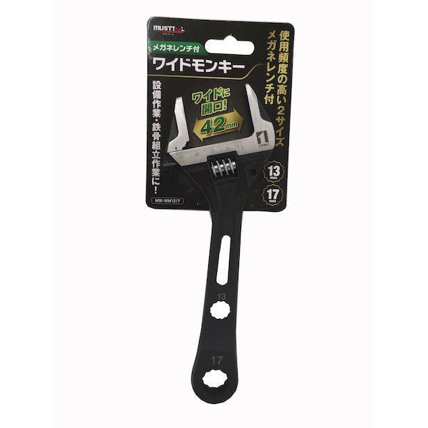 【商品説明】●特徴●コンパクトでJIS強力級●クランプ類17HEXから、鉄骨ボルト41HEXまで使えるワイド開口●便利な13HEX・17HEXメガネレンチ●落下防止コード取付け穴付●サイズ ●モンキー開口3-42mmメガネ13mm/17mm付●全長220mm●重量 331g