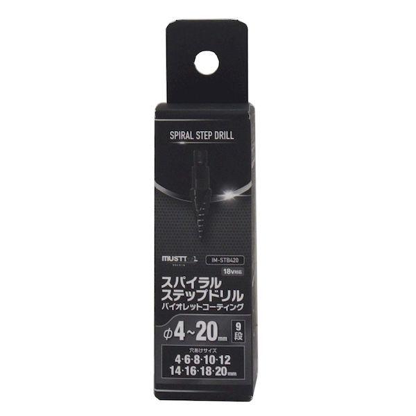 【商品説明】●特徴●交換用のスパイラルステップドリル●ステップドリル本体は高級コバルトハイス鋼M35&チタンバイオレットコーテイング仕様採用で摩耗に強い●寸法●アダプター差し込み部ネジ径 UNF1/2●全長 82mm ●M4-20 :板厚~4.6mm●穴あけサイズ 4,6,8,10,12,14.16.18.20●適合アダプター インパクトレンチ用IM-4W-AP インパクトドライバー用IM-2Q-AP