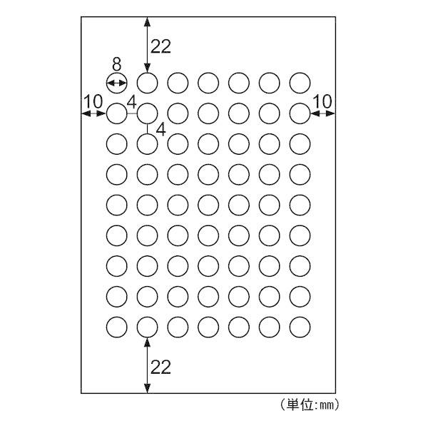 【商品説明】●カレンダーや手帳に貼るスケジュールシール、小物に貼るマークシールなど、いろいろな用途で使える丸型のミニシールです。イラストなどの印刷に適したつやなしタイプで、より鮮やかにカラーを再現します。●入数:10●※インクジェットプリンタ以外のプリンタ・コピー機ではご使用いただけません。●用紙サイズ:はがき(100×148mm)●ラベルサイズ:8×8mm●面付:63 面●厚さ:0.18mm●ラベルのみの厚さ:0.13mm<