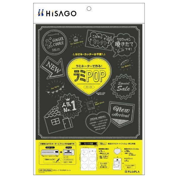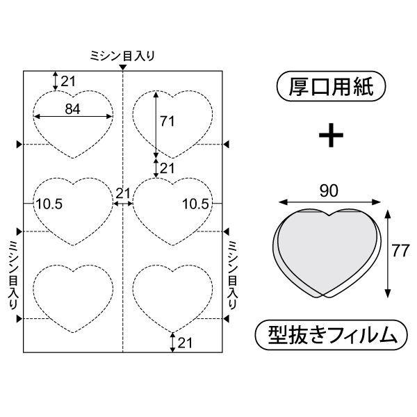 【商品説明】●ハサミ、カッターは不要!オリジナルのラミネートPOPがカンタン・キレイに作成できます。専用用紙と型抜きラミネートフィルムがセットになったPOP作成キットです。●セット内容:厚紙用紙(A4)3シート、型抜きラミネートフィルム18枚、キャリアシート1枚●入数:18●用紙サイズ(ハート型):84×71mm●フィルムサイズ(ハート型):90×77mm●用紙厚さ:0.18mm●フィルム厚さ:100μm