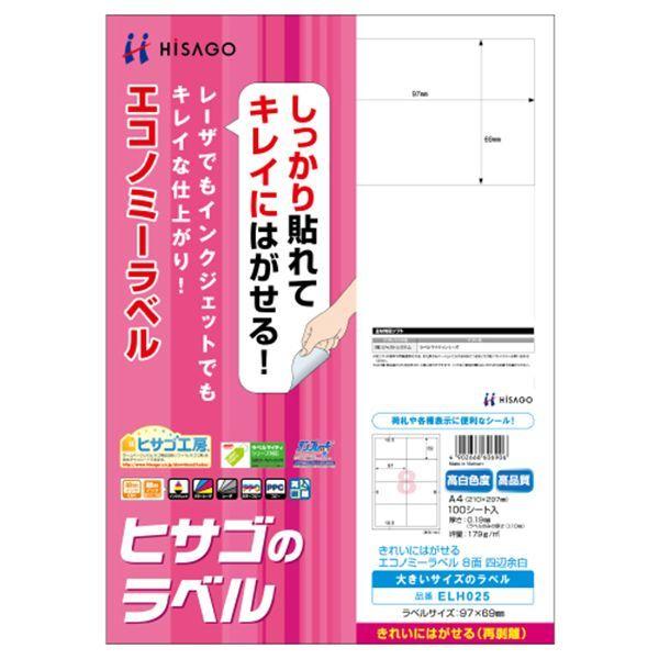 【商品説明】●いろいろなプリンタで使用できるラベルです。しっかり貼れてキレイにはがせる再剥離タイプです。●レーザ・インクジェット・コピー対応●入数:100●用紙サイズ:A4(210×297mm)●ラベルサイズ:97×69mm●面付:8 面●厚さ:0.19mm●ラベルのみの厚さ:0.10mm●坪量:179 g/m2●素材:上質紙 ※剥離紙はリサイクル可能です。