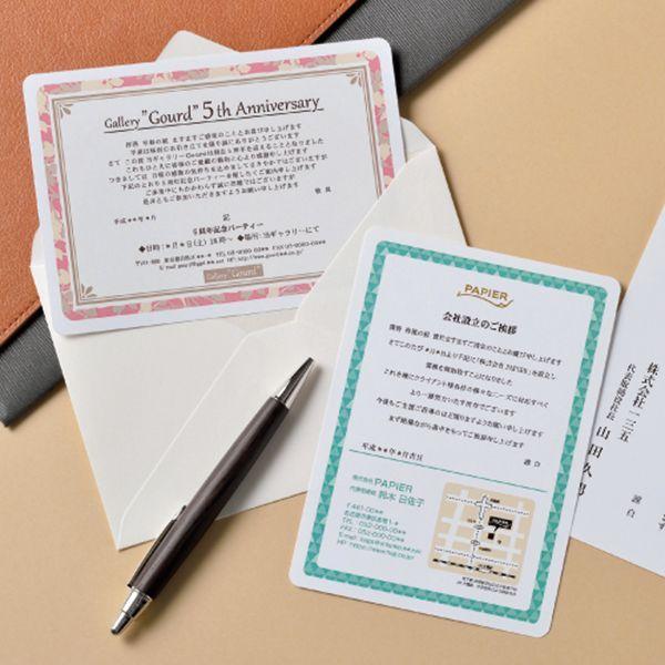 【商品説明】●しっかりした厚みとなめらかな手触りで高級感がありフォーマルな挨拶状や招待状におすすめです。角丸なので優しい印象に仕上がります。4枚分を一度に印刷することができます。●入数:100●※ご使用のプリンタで使用可能な紙厚の範囲をお確かめください。※洋形1号・2号の封筒にぴったり入ります。(封筒は商品に含まれておりません。)※はがきとしてお使いの場合は、宛名の面に「郵便はがき」またはそれに相当する文字を表記してください。※角丸仕
