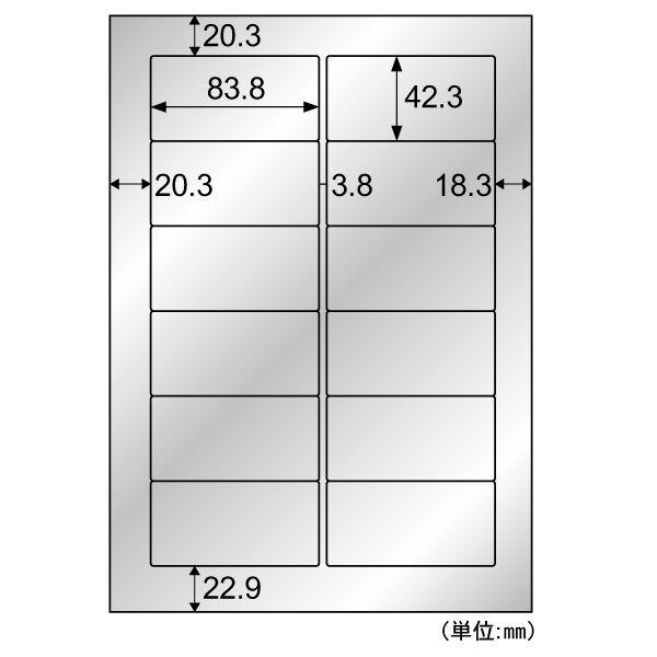 【商品説明】●水・光・温度変化に強く、破れにくい!下地が透けないのでバーコードなどでの資材管理にもおすすめです。つや消しシルバーなので上品で高級感のある印象を与えられます。●入数:6●カラーレーザ・コピー(カラー、モノクロ)専用●※ モノクロレーザプリンタ・インクジェットプリンタではご使用いただけません。●用紙サイズ:A4(210×297mm)●ラベルサイズ:83.8×42.3mm●面付:12 面●厚さ:0.23mm●ラベルの