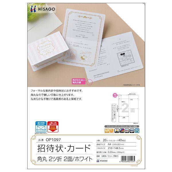 【商品説明】●しっかりした厚みとなめらかな手触りで高級感がありフォーマルな案内状や招待状におすすめです。角丸なので優しい印象に仕上がります。2枚分を一度に印刷することができます。●入数:20●※ご使用のプリンタで使用可能な紙厚の範囲をお確かめください。※2つ折りにして、洋形1号・2号の封筒にぴったり入ります。(封筒は商品に含まれておりません。)※往復はがきとしてお使いの場合は、宛名の面に「郵便往復はがき」またはそれに相当する文字を表記してくだ