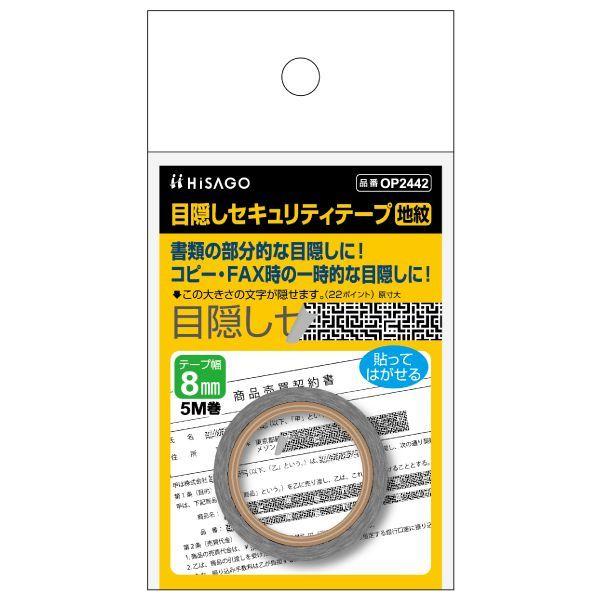 【商品説明】●原本を汚さず、隠したい部分に貼って、後からキレイにはがせる再剥離タイプの目隠しテープです。書類の部分的な目隠しに!コピー・FAX時の一時的な目隠しにも使用できます。地紋タイプと黒タイプそれぞれ3種類の幅をご用意しています。●入数:1●※インクジェットプリンタ専用紙にはご使用いただけません。※テープはゆっくり引き出してお使いください。※被着面の素材によっては、テープを貼り付けた後、はがす際に被着面の印刷がはがれてしまうことがありま