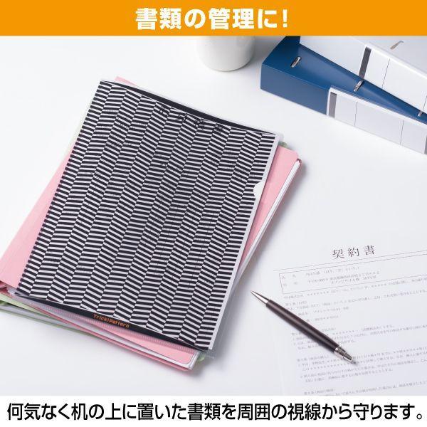 【商品説明】●中に入れた書類の文字が見えにくくなる、特殊なパターン入りのクリアフォルダです。契約書や個人情報など、内容を見られたくない書類の保管・持ち運びに便利です。ブラック・ブルー・ピンクのカラーバリエーションで分類もしやすいです。●入数:10●※本製品は、すべての状況・使用形態において、完全に個人情報等の内容の保護、盗み見・改ざん・漏洩の防止を保証するものではありません。●サイズ:A4(外寸W220×H310mm)●厚さ:0.2mm●素材:PP●